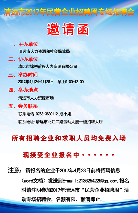 清遠市2017年“民營企業(yè)招聘周”活動專場招聘會