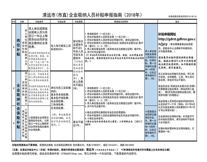 清遠(yuǎn)市(市直)企業(yè)吸納人員補貼申報指南(2018年)