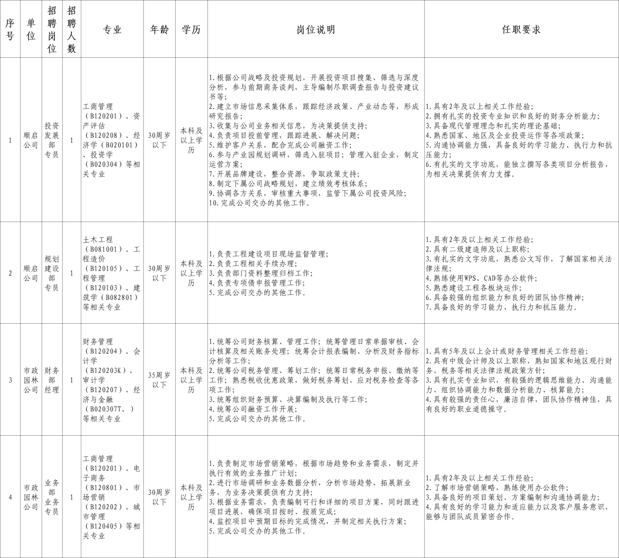 根據(jù)業(yè)務(wù)發(fā)展需要,順啟公司現(xiàn)需面向社會(huì)公開(kāi)招聘合同制員工,有關(guān)事項(xiàng)公告如下: